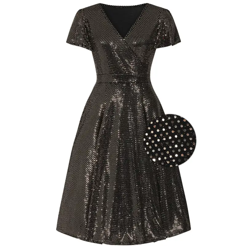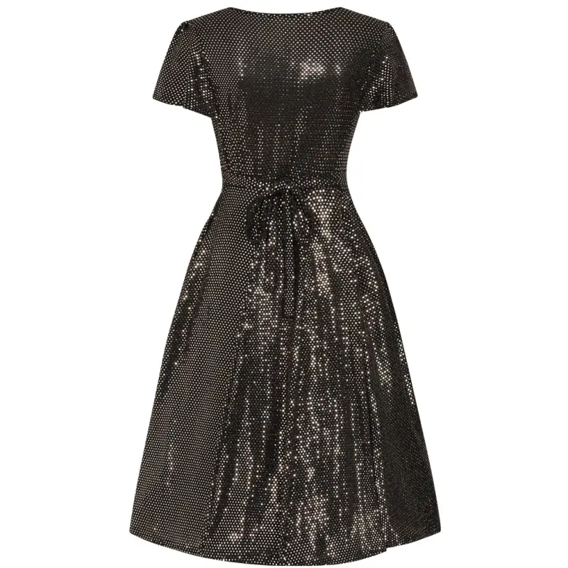 Naisellinen, imarteleva ja vintagecharmia huokuva Lady Vintage Lyra -mekko on vaatekaapin klassikko, joka on suunniteltu mukavuutta ja eleganssia silmällä pitäen. Tämä paljettimekko on täydellinen juhliin, illanviettoihin tai piristykseksi arkipukeutumiseen.