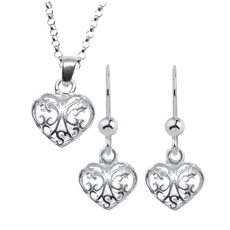 Ihastuttavassa Pitsisydän-riipus ketjulla sekä Pitsisydän-korvakorut ovat Hopeajalosteen Magic Silver-mallistoa. Pitsisydän-riipus ja ketju ovat aitoa hopeaa (nikkelivapaa, ei aiheuta allergiaa).